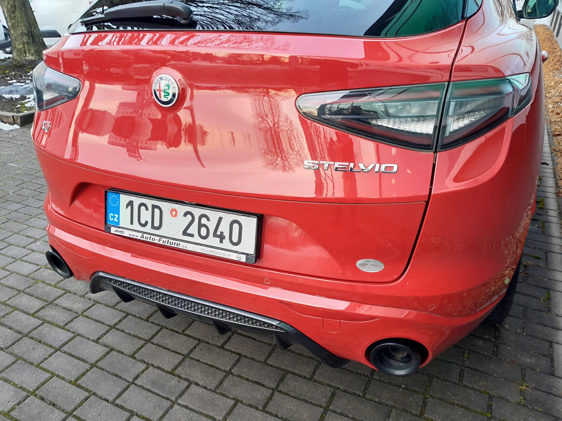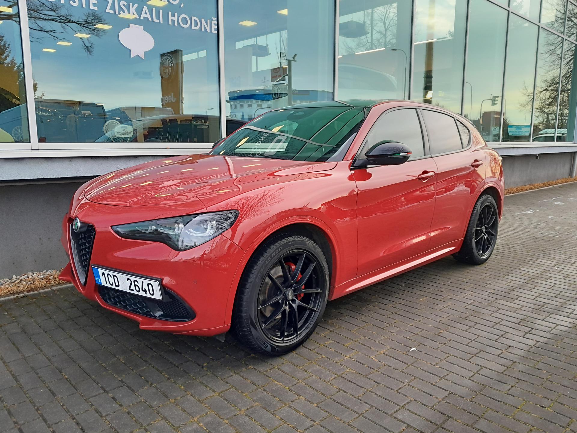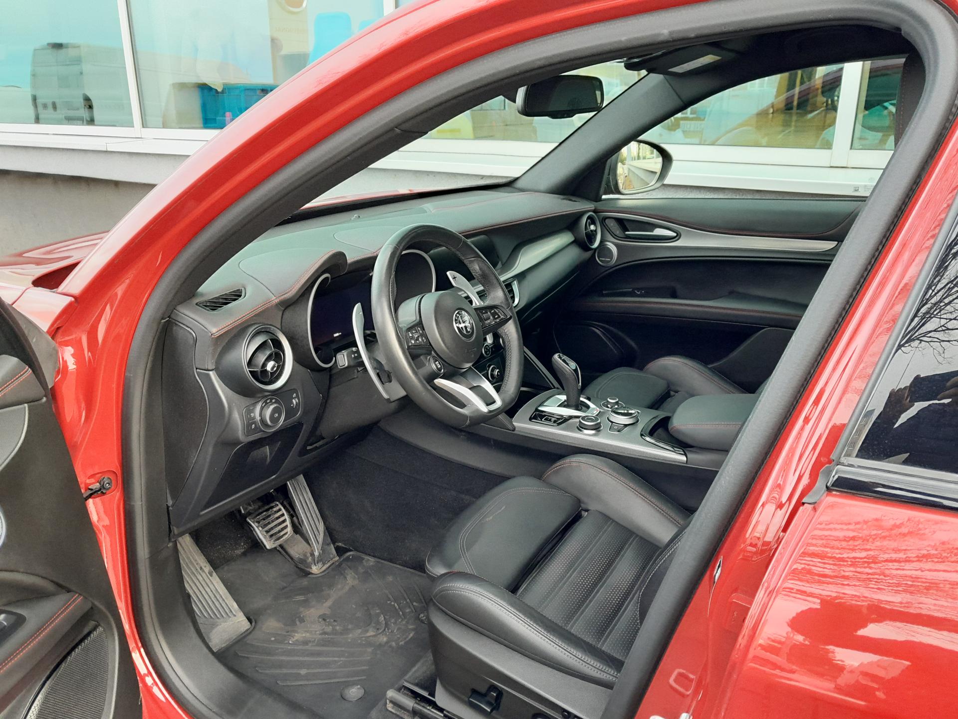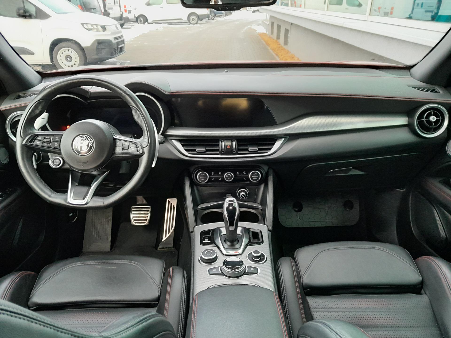 | Výbava | pohon 4x4, 8 rychlostních stupňů, 8x airbag, ABS, stabilizace podvozku (ESP), asistent rozjezdu do kopce (HSA), hlídání jízdního pruhu, hlídání mrtvého úhlu, dvouzónová klimatizace, aut. klimatizace, adaptivní tempomat, LED denní svícení, alu kola, plní 'EURO VI', digitální přístrojový štít, volba jízdního režimu, elektronická ruční brzda, satelitní navigace, hlídání provozu při couvání (RCTA), parkovací senzory přední, parkovací senzory zadní, parkovací kamera, bezklíčové startování, bezklíčové odemykání, senzor světel, senzor stěračů, nastavitelný volant, multifunkční volant, vyhřívaný volant, řazení pádly pod volantem, hands free, Android Auto, Apple CarPlay, bluetooth, el. víko zavazadlového prostoru, el. okna, el. sklopná zrcátka, startování tlačítkem, imobilizér, sportovní sedadla, potahy kůže, kožené čalounění, vyhřívaná sedadla, el. seřiditelná sedadla, výškově nastavitelná sedadla, přední světla LED, zadní světla LED, start-stop systém, USB, AUX, autorádio, vyhřívaná zrcátka, dělená zadní sedadla, střešní spoiler, zadní stěrač, zatmavená zadní skla, 20' kola, 8,4' dotykový displej, aktivní protikolizní systém, Alfa™ Connect, Alfa™ DNA, centrální zamykání s dálkovým ovládáním, digitální radio, elektrická ruční brzda, elektrochrom. zpětné zrcátko+dešť.senzor, ESP, kožený volant, kůží potažený volant a hlavice řad. páky, lak nemetalický, Měřič tlaku v pneumatikách, MP3 přehrávač, Navigace s parkovací kamerou, omezovač rychlosti, ovládání audio systému na volantu, paket: Winter, palubní počítač - EVIC s 7' obrazovkou, pokročilý brzdový asistent, tónovaná skla, ukazatel rychlostních limitů, zásuvka 12V |