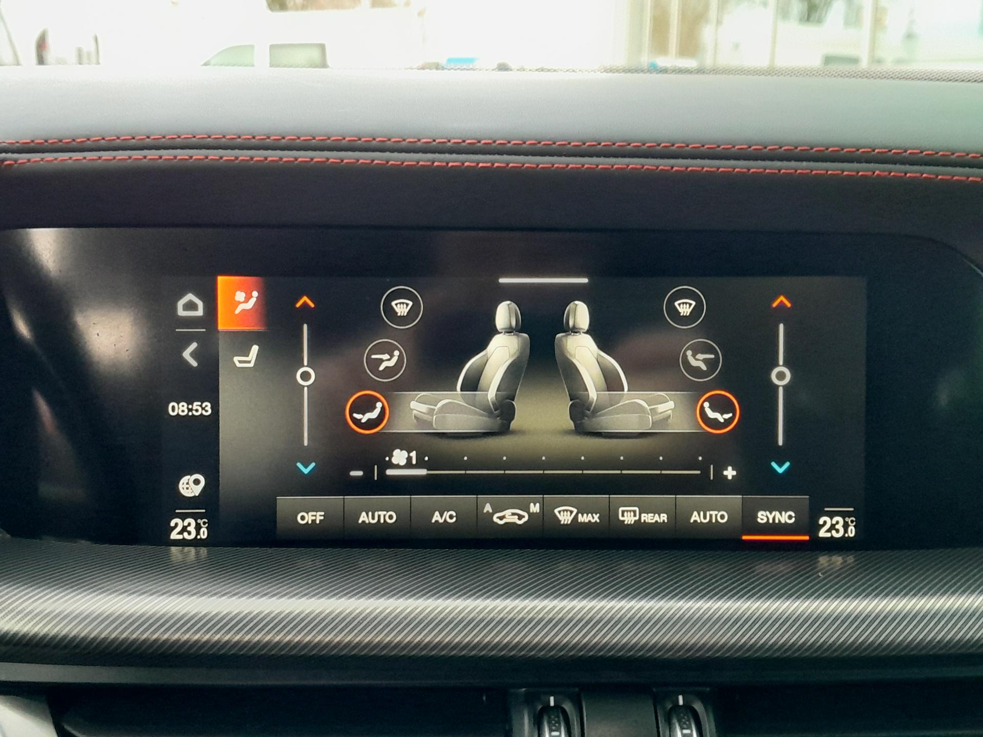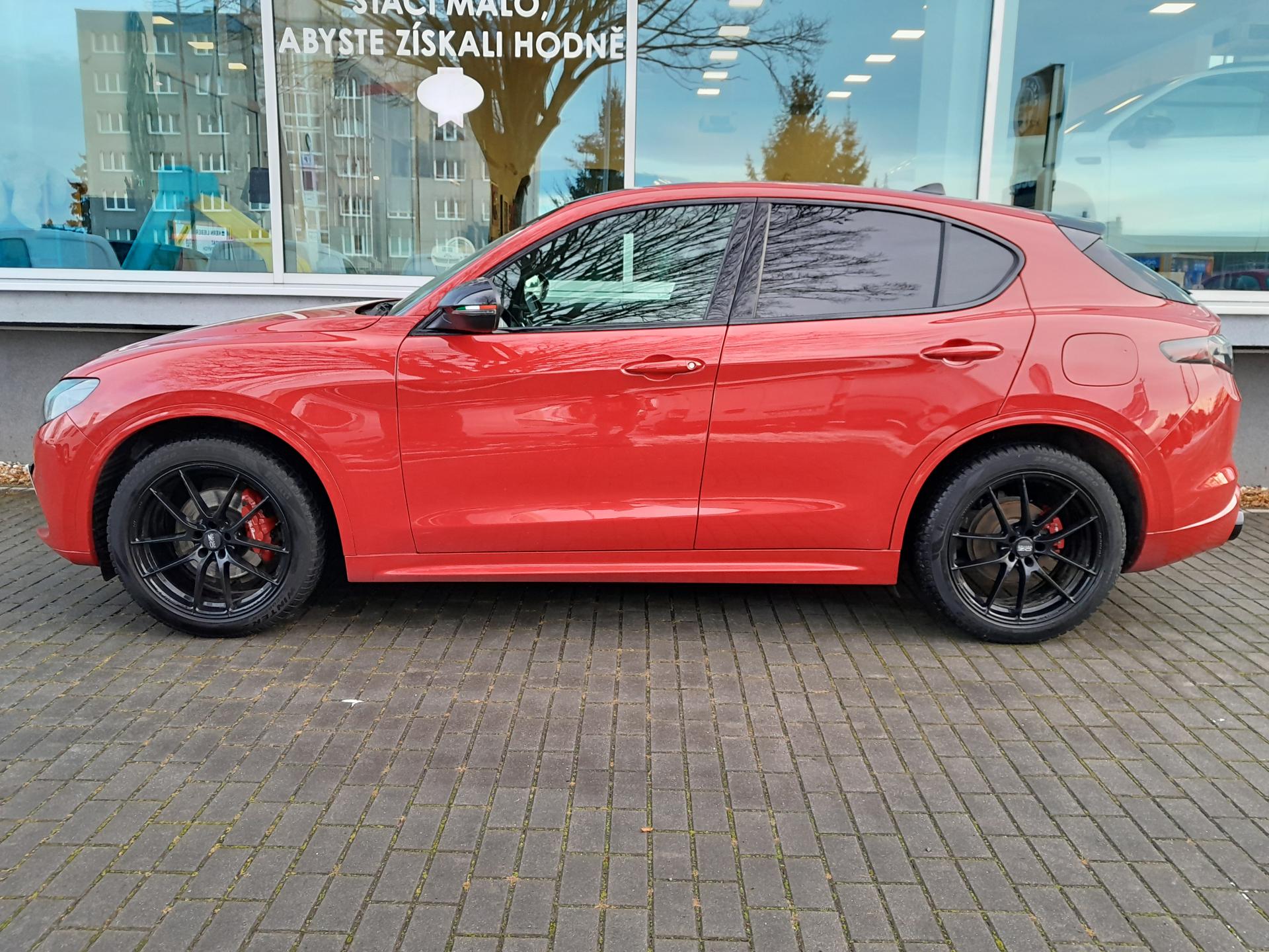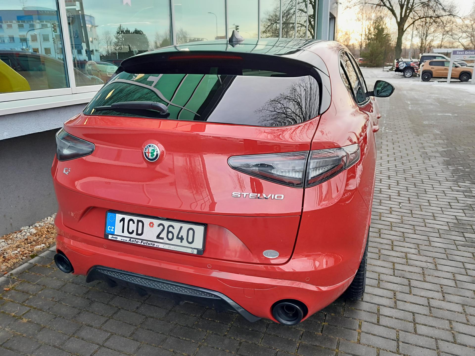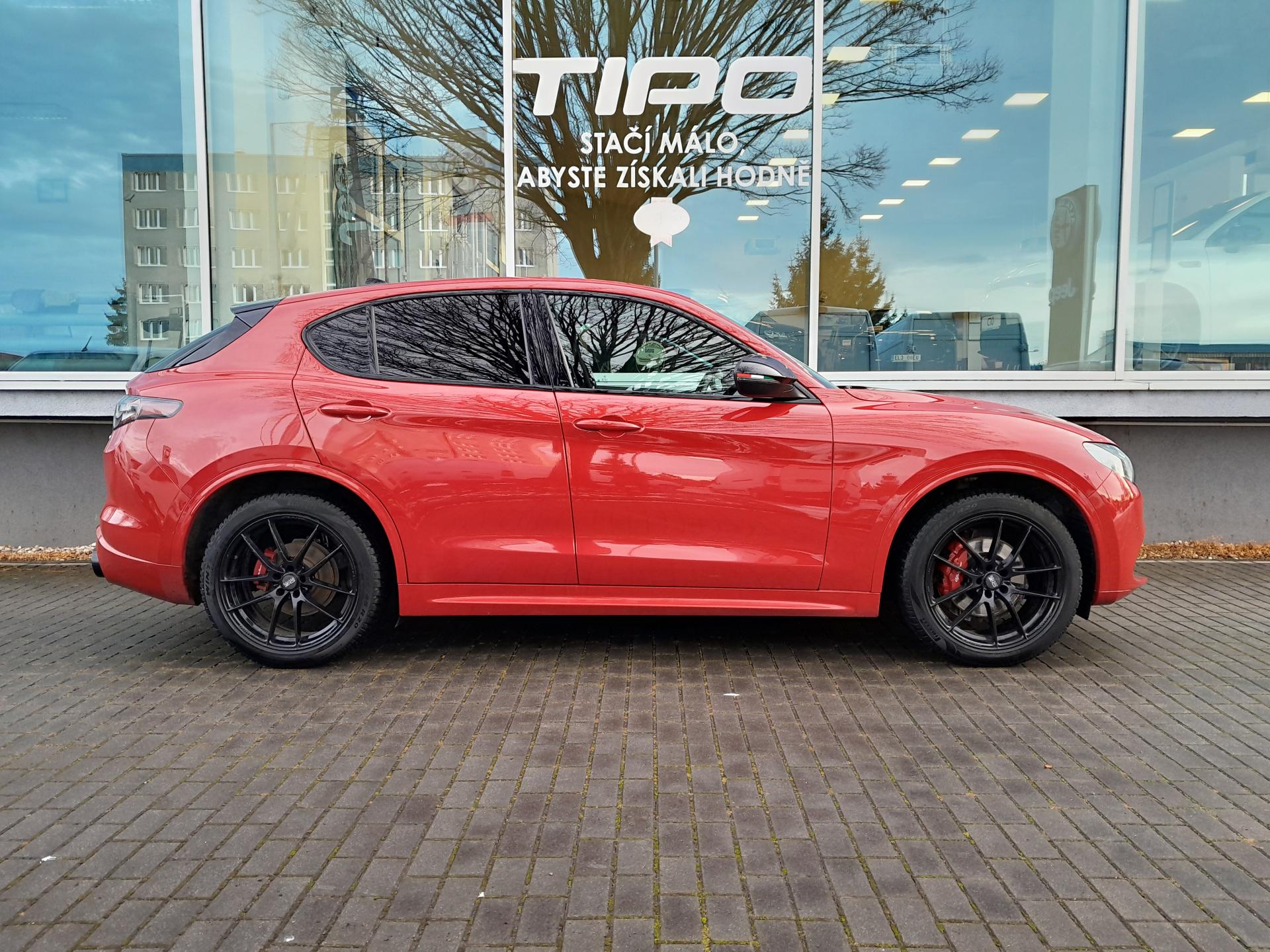 | Výbava | pohon 4x4, 8 rychlostních stupňů, 8x airbag, ABS, stabilizace podvozku (ESP), asistent rozjezdu do kopce (HSA), hlídání jízdního pruhu, hlídání mrtvého úhlu, dvouzónová klimatizace, aut. klimatizace, adaptivní tempomat, LED denní svícení, alu kola, plní 'EURO VI', digitální přístrojový štít, volba jízdního režimu, elektronická ruční brzda, satelitní navigace, hlídání provozu při couvání (RCTA), parkovací senzory přední, parkovací senzory zadní, parkovací kamera, bezklíčové startování, bezklíčové odemykání, senzor světel, senzor stěračů, nastavitelný volant, multifunkční volant, vyhřívaný volant, řazení pádly pod volantem, hands free, Android Auto, Apple CarPlay, bluetooth, el. víko zavazadlového prostoru, el. okna, el. sklopná zrcátka, startování tlačítkem, imobilizér, sportovní sedadla, potahy kůže, kožené čalounění, vyhřívaná sedadla, el. seřiditelná sedadla, výškově nastavitelná sedadla, přední světla LED, zadní světla LED, start-stop systém, USB, AUX, autorádio, vyhřívaná zrcátka, dělená zadní sedadla, střešní spoiler, zadní stěrač, zatmavená zadní skla, 20' kola, 8,4' dotykový displej, aktivní protikolizní systém, Alfa™ Connect, Alfa™ DNA, centrální zamykání s dálkovým ovládáním, digitální radio, elektrická ruční brzda, elektrochrom. zpětné zrcátko+dešť.senzor, ESP, kožený volant, kůží potažený volant a hlavice řad. páky, lak nemetalický, Měřič tlaku v pneumatikách, MP3 přehrávač, Navigace s parkovací kamerou, omezovač rychlosti, ovládání audio systému na volantu, paket: Winter, palubní počítač - EVIC s 7' obrazovkou, pokročilý brzdový asistent, tónovaná skla, ukazatel rychlostních limitů, zásuvka 12V |