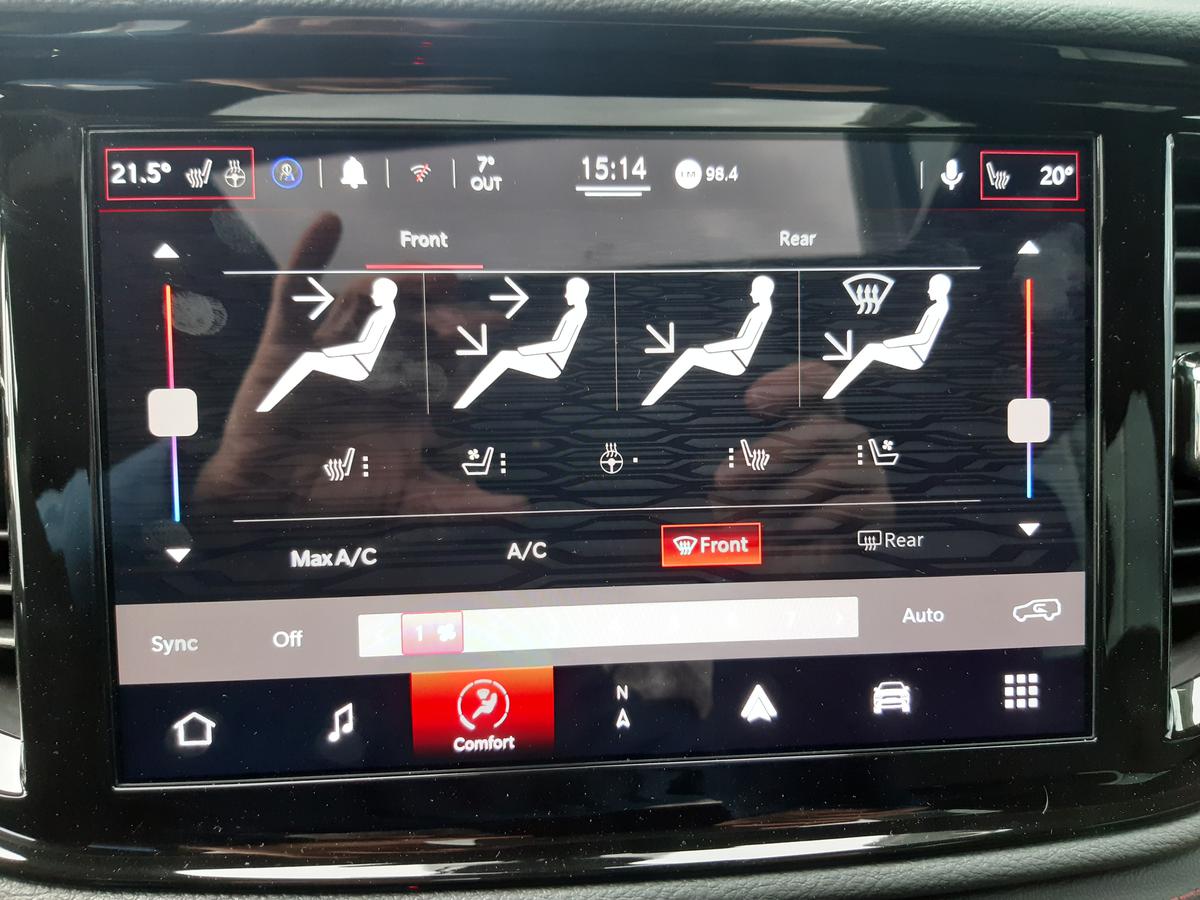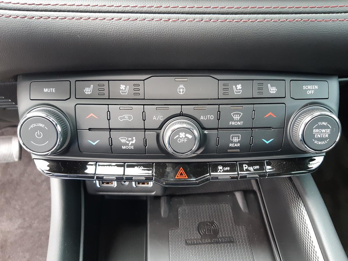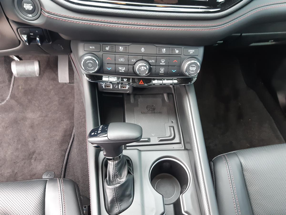 | Výbava | pohon 4x4, 8 rychlostních stupňů, 6x airbag, ABS, hlídání mrtvého úhlu, tažné zařízení, posilovač řízení, třízónová klimatizace, tempomat, LED denní svícení, alu kola, plní 'EURO VI', palubní počítač, hlídání provozu při couvání (RCTA), parkovací senzory přední, parkovací senzory zadní, bezklíčové startování, bezklíčové odemykání, multifunkční volant, vyhřívaný volant, Android Auto, Apple CarPlay, bezdrátová nabíječka mobilních telefonů, Dešťový senzor, el. sklopná zrcátka, samostmívací zrcátka, startování tlačítkem, imobilizér, alarm, isofix, kožené čalounění, el. seřiditelná sedadla, výškově nastavitelná sedadla, senzor tlaku v pneumatikách, dvojitá chromová koncovka výfuku, vyhřívaná zrcátka, střešní okno, tónovaná skla, zatmavená zadní skla, vyhřívaná zadní sedadla, 7 míst, 20' kola, 3 řada sklopných sedadel, aktivní protikolizní systém, asistent dálkových světel, asistent pro rozjezd do kopce HAC, asistent stability přívěsu TSA, automatická klimatizace, Bluetooth handsfree, centrální zamykání s dálkovým ovládáním, Černé čalounění stropu, dojezdová rezerva, el. ovládání předních a zadních oken, el. samosvorný diferenciál zadní nápravy, ESP, hlavní světlomety FULL LED, kůží potažený volant a hlavice řad. páky, lak pastelový, LED zadní světlomety, Nastavení intenzity podsvícení přístrojů, Navigace s parkovací kamerou, Převodovka automatická, řazení páčkami pod volantem, středová loketní opěrka, ventilovaná sedadla řidiče a spolujezdce, vyhřívaná přední sedadla |